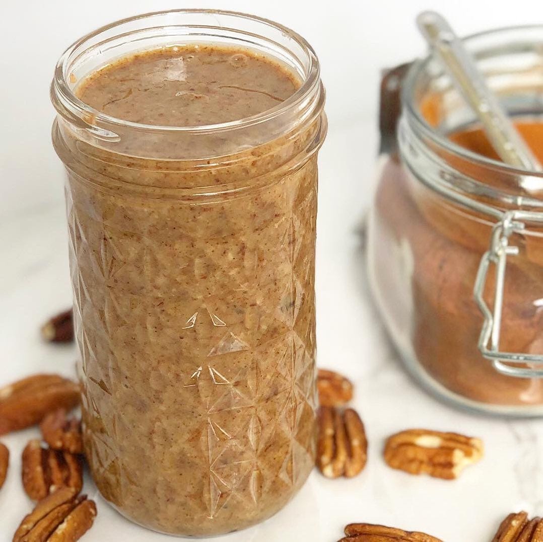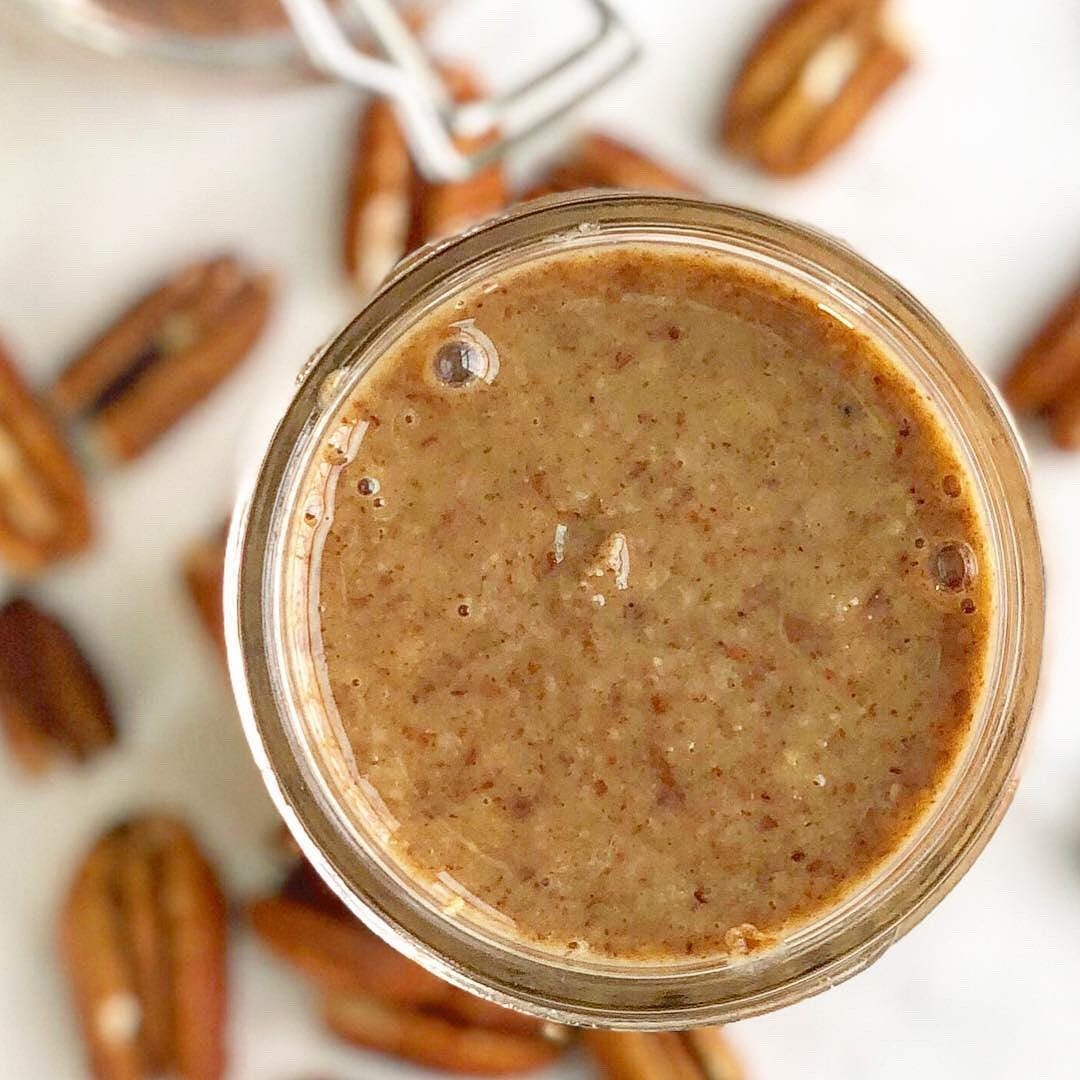 Mix pecan butter with a little olive oil, lemon juice, and honey to create a flavorful dressing for roasted carrots, sweet potatoes, or Brussels sprouts.